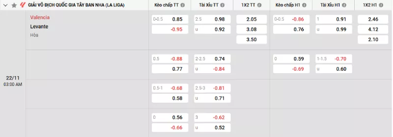 Nhận định soi kèo Valencia vs Levante – 03h00 22/11/2025 – La Liga